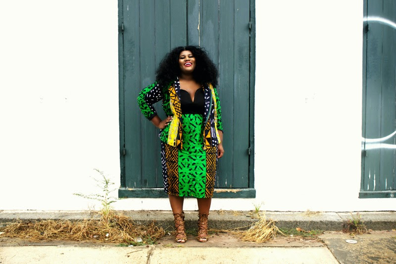 Here are separates That I plan on selling at the shop. I'm a lover of biker jackets so it was only right I created one with prints. I paired the jacket with a midi skirt and bodysuit from Boohoo.